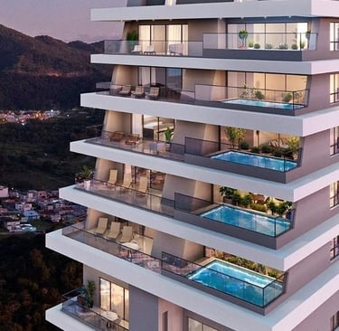 Torres del Sol destaca por su arquitectura contemporánea en niveles, con amplias terrazas ajardinadas y espacios que se integran armónicamente con el entorno. Un proyecto que redefine el estilo de vida moderno en Cuenca.